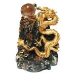 風水開運置物 大理石調 金龍上山 高33×幅23×奥22cm 重さ約10kg 水晶玉大玉のみ 溶解水晶か天然水晶玉選択可能