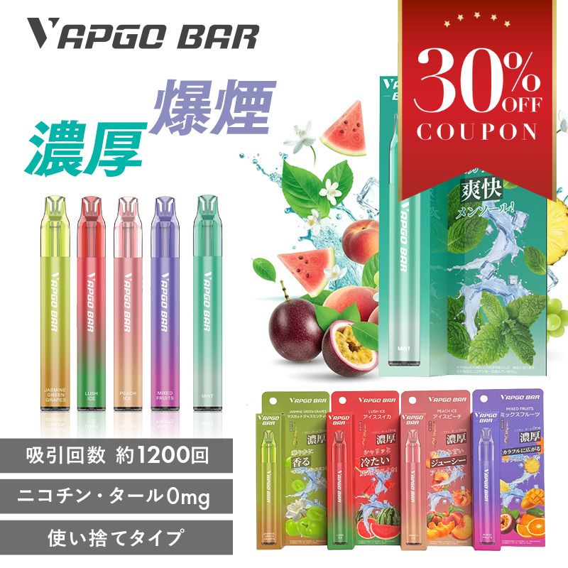 【期間限定30%OFFクーポン】VAPGO BAR ベイプ 本体 使い捨て ポケットシーシャ シーシャ ベープ 持ち運び 電子たばこ ニコチンなし タールなし タール ニコチン フリー ニコパフ 1200回 水タバコ 使い切り vape 禁煙 水蒸気 禁煙パイポ ニコチン0 フレーバー メンソール 人気