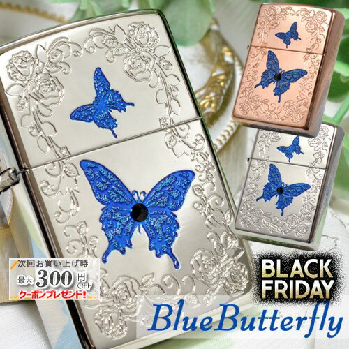 BlueButterfly ブルーバタフライ 両面加工◆ 蝶 スワロフスキー シリアルナンバー入り ローズピンクRP/ホワイトニッケルWN ピンクゴールド シルバー 銀 ZIPPO ジッポー オイルライター