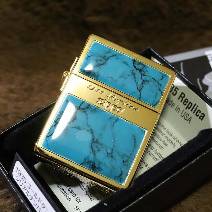 限定ZIPPO 1935 レプリカ ターコイズパネル 金 ゴールド 限定シリアルナンバー入り 人気 ジッポ ゴールドタンク シンプル アンティーク プレゼント 金タンク かっこいい オイルライター 限定ジッポ レプリカジッポ