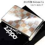 ZIPPO 一点物 2014年製 廃盤 シルバー&ピンクチェック ボトムズアップ 絶版品 ジッポ ライター スピンカット おしゃれ 両面加工