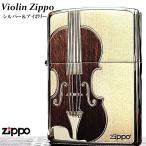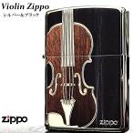 ZIPPO ライター バイオリン 楽器 ジッポ シルバー&ブラック 彫刻 おしゃれ 木目デザイン 音楽 かっこいい レディース メンズ