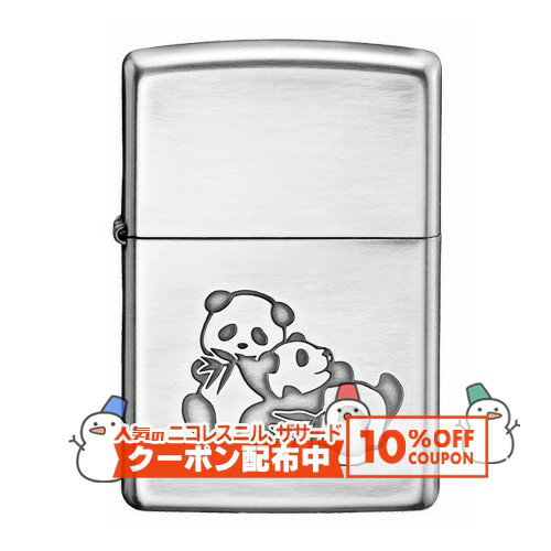 10%OFF配布中◇ 双子パンダ ZIPPOライター ◆喫煙具 ジッポー オイルライター シルバー 動物