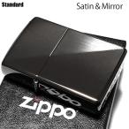 ZIPPO スタンダードハーフ ブラック サテン 鏡面 ジッポ ライター おしゃれ 両面加工 シンプル メンズ レディース 黒 ギフト プレゼント