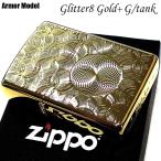 ZIPPO ライター アーマー ゴールド グリッター8 両面加工 ジッポ 重厚 NC彫刻 金タンク かっこいい ダイヤカット