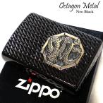 ZIPPO かっこいい アーマー ジッポライター オクタゴンメタル ドラゴン 両面加工 ダイヤカット彫刻 ブラック 龍 重厚 ギフト プレゼント