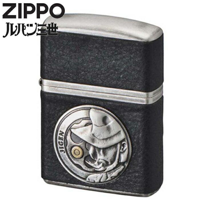 ZIPPO ルパン三世 次元 アーマー ジッポ ライター ヴィンテージ・スタイル 本牛革巻き 4面 シルバーバレル&ブラック アニメ