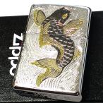 ZIPPO ライター 和柄 鯉 シルバー ジッポ コイ 日本 和風 昇り鯉 彫刻 銀 デンチュウバン 夫婦 メンズ プレゼント ギフト