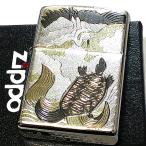 ZIPPO ライター 鶴 亀 和柄 かっこいい 和風 ジッポ シルバー 日本 ツルカメ 彫刻 御守り 縁起 デンチュウバン 銀 メンズ
