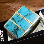 ZIPPO ライター 限定 1935 復刻レプリカ ジッポー ターコイズブルー&ゴールド かっこいい 4面加工 シリアルナンバー入り