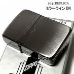 ZIPPO ライター ミラーライン ジッポ 1941 復刻レプリカ ブラックニッケル サテン&鏡面 かっこいい メンズ プレゼント