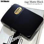 ZIPPO ライター 1941 復刻レプリカ マットブラック ゴールドプレート ロゴ メタル貼り ジッポ シンプル かっこいい 金黒 メンズ