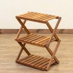 木製ラック 棚3段 折たたみ式 46.5cm幅 フラワースタンド アウトドア キャンプ 調理用品置き台にも 木製 アカシア材 UNL-23 軽量