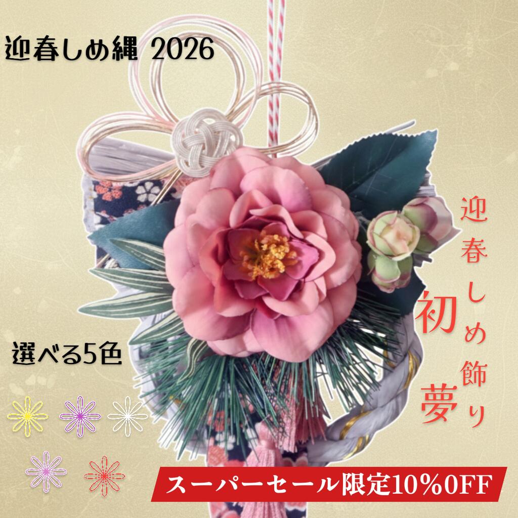 スーパーセール限定!10%OFF+ポイント10倍12/11まで★数量限定★ 迎春 しめ縄飾り お正月飾り 初夢 小さめリース くすみカラー 椿 南天 松 アジサイ 和モダン 玄関ドア飾り マンションOK おしゃれ 注連飾り 送料無料