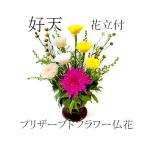 プリザーブドフラワー仏花 好天 こうてん 花器付き お盆 小菊の仏花 小さめ仏花 お供え花 お仏壇 お彼岸 ご供養 水やり不要