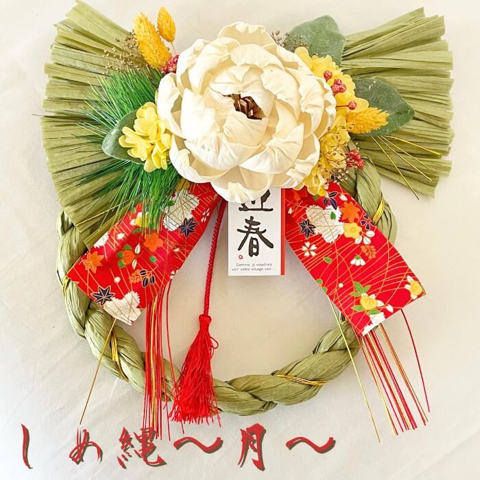 \スーパーセール 10%OFF/ お正月 しめ縄 おしゃれ M 縦27cm 横29cm プリザーブドフラワー 〜月〜 花 アーティフィシャルフラワー 可愛い アレンジメント フラワー アレンジ ギフト プレゼント 祝い 女性 税込み 豪華 正月 贈り物 お礼 母 女性 妻 両親 送料無料