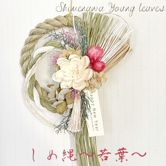 \スーパーセール 10%OFF/ お正月 しめ縄 おしゃれ M 長さ45cm 横幅26cm 〜若葉〜 大きい 花 プリザーブドフラワーアーティフィシャルフラワー アレンジメント フラワー アレンジ ギフト プレゼント 祝い 女性 和風 リース 正月 和モダン 贈り物 お礼 母 女性 両親 送料無料