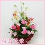 【お祝い】花キューピット 敬老の日 誕生日 記念日 結婚祝い 歓送迎 還暦 開店開業 卒業入学 生花 ピンクユリの華やかアレンジメント