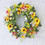 造花 プルメリアと小花のひまわりリース 壁掛け シルクフラワー ヒマワリ CT触媒 アレンジ インテリア フラワーアレンジ フラワーアレンジメント arg