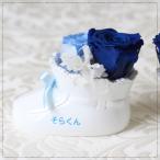 プリザーブドフラワー 出産祝い 名前入りベビーシューズ 青 花 ギフト プレゼント フラワーアレンジメント 男児向け