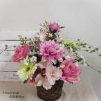 ◆ピンクのダリアのバスケットアレンジメント・造花 ギフト お祝い 新築祝い 結婚祝い 花倶楽部