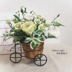 ◎お値下げ◎◆白バラの三輪車のアレンジメント・造花 ギフト お祝い 新築祝い 結婚祝い 花倶楽部