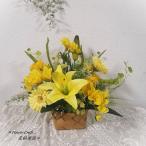 ◆黄色のカサブランカ・バスケットのアレンジメント・造花 ギフト お祝い 新築祝い 結婚祝い 花倶楽部