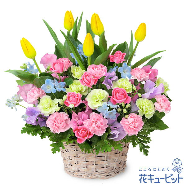 【チューリップのミックスアレンジメント】(523026・アレンジメント)(全国の花キューピット加盟店がお届けします)誕生日/結婚祝い/出産/御祝/お見舞い/ペット/還暦祝い/フラワーギフト/歓迎 /退職/当日配達/即日配達/開店祝/花/お祝い/