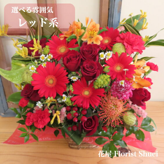 アレンジメントフラワー 送料無料 アレンジメント・レッド系 I アレンジメントフラワー 還暦祝い 花 退職祝い 定年 プレゼント アレンジメントフラワー 楽屋花 お祝い 男性 女性 花 アレンジメントフラワー 結婚祝い 結婚記念日 妻【メッセージカード付き】【花屋】