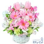 【チューリップ特集】花キューピット お誕生日 記念日 歓送迎 お祝い ホワイトデー 春のピンクアレンジメント