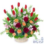【チューリップ特集】花キューピット お誕生日 記念日 歓送迎 お祝い ホワイトデー 赤チューリップの華やかアレンジメント
