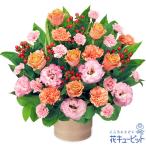 【退職祝い】花キューピット 花 ギフト お祝い プレゼントピンク&オレンジのキューブアレンジメント
