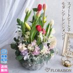 春 スイートピーとチューリップ モダンアレンジメント 開店祝いギフト 誕生日 プレゼント豪華 展覧会