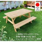 日本製ニュージーランドパインピクニックテーブル 幅147(防腐加工) 無塗装(パラソル穴付) 送料無料