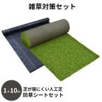 雑草対策セット 人工芝プレミアムZ&防草シート 芝丈35mm サイズ1×10m シートセット