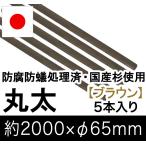 国産 杉 丸太 (ブラウン) 約2000mm×φ65mm(5本入り)(丸太柵/支柱/木杭/ローリング/丸棒杭/ガーデニング/ACQ/木材/木柵/進入防止)