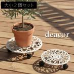アイアン製プランタースタンドキャスター付 大小2個セット 「deacor」 (デーコル) アンティークホワイト (IF-N003637-2P-WHT) ※北海道・沖縄・離島配送不可