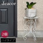 アイアン製プランタースタンド 脚付き ハイタイプ 「deacor」(デーコル) 2個組 アンティークホワイト (IF-N0039-2P-WHT) ※北海道・沖縄・離島配送不可