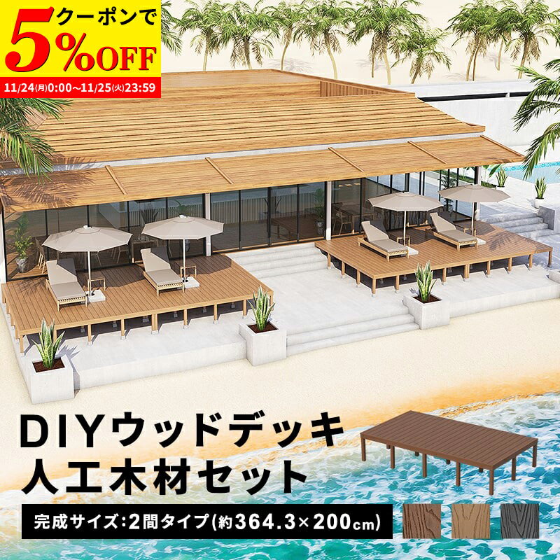 【クーポンで5%OFF★11/24 0:00〜11/25 23:59】 ウッドデッキ 人工木 [364.3×200cm] 2間サイズ 人工木デッキ DIY キット 腐食しない 庭 デッキ ガーデンデッキ ステージ 縁台 エクステリア 組み立て DIYセット 高さ20~60cm 水洗いOK