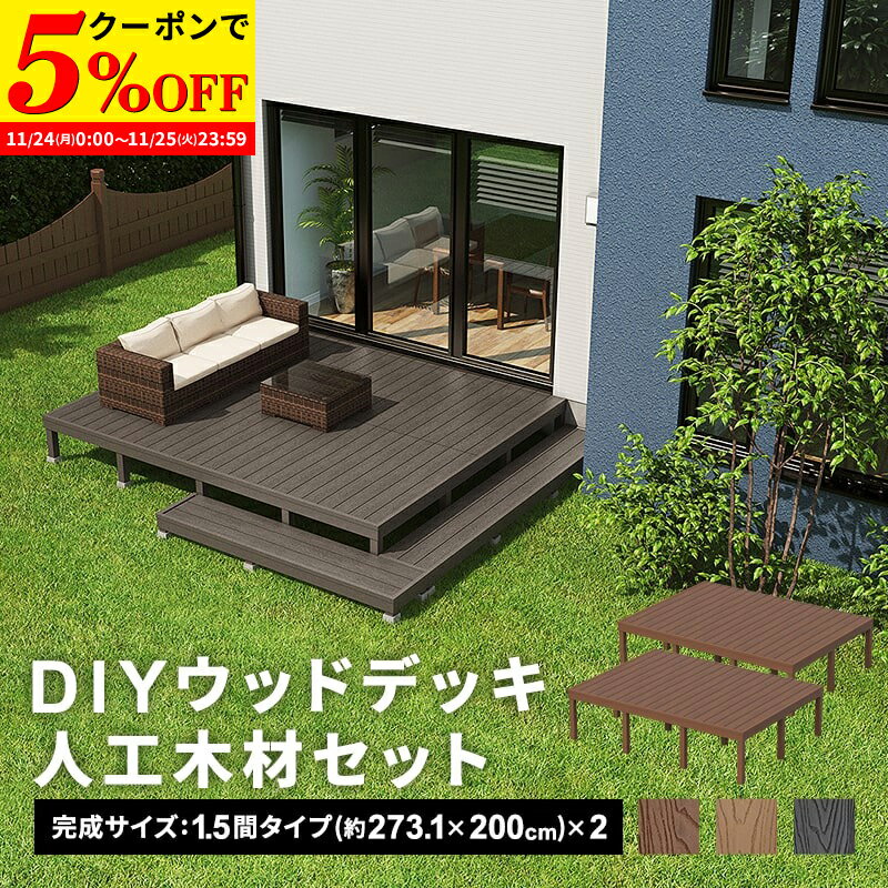 【クーポンで5%OFF★11/24 0:00〜11/25 23:59】 デッキ 人工木 [273.1×200cm] 1.5間サイズ 2セット 人工木デッキ DIY キット 庭 デッキ ガーデンデッキ ステージ 縁台 エクステリア 組み立て DIYセット 高さ20~60cm 水洗いOK