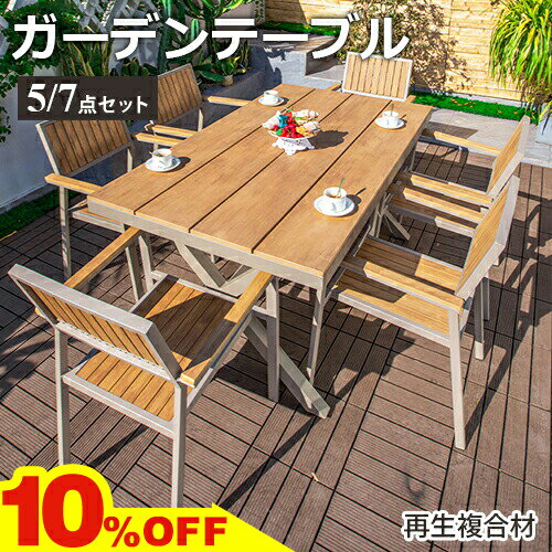 8%OFF期間限定★ガーデン テーブル セット チェア 5点セット 7点セット 椅子 イス おしゃれ 庭 屋外 家具 エクステリア ガーデン デスク 再生複合材 木目調 防水 耐久性 アウトドア カフェ ホテル ガーデニング ファニチャーセット
