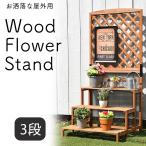 木製 フラワースタンド ガーデニング フェンス 木目 天然木 3段 花台 棚 ハンギング プランターラック レトロ 倉出し