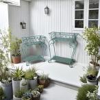 プランターラック 2個セット エレガント 金属製 ホワイト ブルー 庭 ヴィンテージ調 白 レトロ アイアンラック ガーデニング 雑貨 ガーデン雑貨