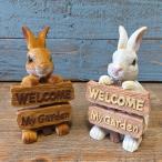 うさぎ 置物 オブジェ おしゃれ welcome オーナメント ウサギ ラビット セメントのガーデン置物 ウェルカムラビット