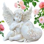 ガーデニング ガーデンオーナメント 置物 オブジェ かわいい 天使 エンジェル フェアリー インテリア 雑貨 樹脂【 ハートローズエンジェル 】