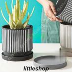 植木鉢 鉢植え 陶器製 シンプル 北欧 底穴あり 受皿付き 通気性 インテリア 室内 卓上 事務室 丸形 ストライプ 卓上装飾品 ガーデン 置物