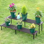 フラワースタンド プランタースタンド 屋外 スチール製 園芸ラック ガーデンラック 錆びない 2段 横型 盆栽棚 植物棚 フラワーラック 室内 おしゃれ 防サビ