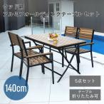 ガーデン ガーデンテーブルセット 庭 ウッド調アルミフォールディングテーブル 長方形 5点セット(ln-g-uft140-ln-g-uch)