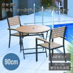 ガーデン ガーデンテーブルセット ウッド調 庭 ウッド調アルミフォールディングテーブル 丸形 3点セット(ln-g-uft90-ln-g-uch)