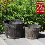 FRP製 植木鉢 バレル型プランター大小2個組 直径24cm 直径29.5cm 木製ウイスキー樽風プランター ガーデニング EBP-2430